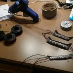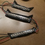 Next, I cut out the pieces for each armor piece and assembled a few of them. The upper arm armor needed to be fully assembled before it could be finished so I used these pieces to test my light design to make sure it reflects off my body as anticipated. Conclusion: It does.