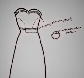 The image of my poster would not upload. This dress lights up in response to temperature of your fingers. When you touch the temperature sensor and your fingers are warm, it lights up red. When your fingers are cold, it lights up blue. I am glad that the […]